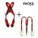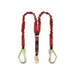 Elemento de detención de caídas tipo Y, fabricado en cinta tubular elasticada de 32mm, con mosquetón y dos ganchos escala de acero forjado. Soporta hasta 140kg, incluyendo ropa y herramientas. Ideal para la industria y construcción.